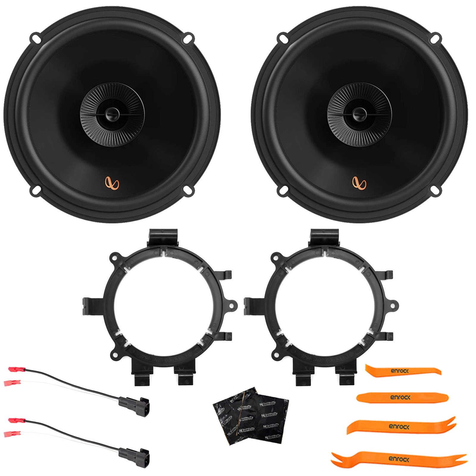 PACKAGE BUNDLE INCLUDES: 2x Infinity Primus Series PR603F 6.5" 150 Watts Max Power 2-Way Multi-Element Car Audio Speakers, 2x Speaker Wire Harness, 2x 5.25" or 6.5" Speaker Mounting Bracket Adaptor, 2x Speaker Sound Deadening Material For Car Speakers, 4-Piece Trim Removal Pry Tool Set (Bundle Fits Select 1995-2009 GM Vehicles)