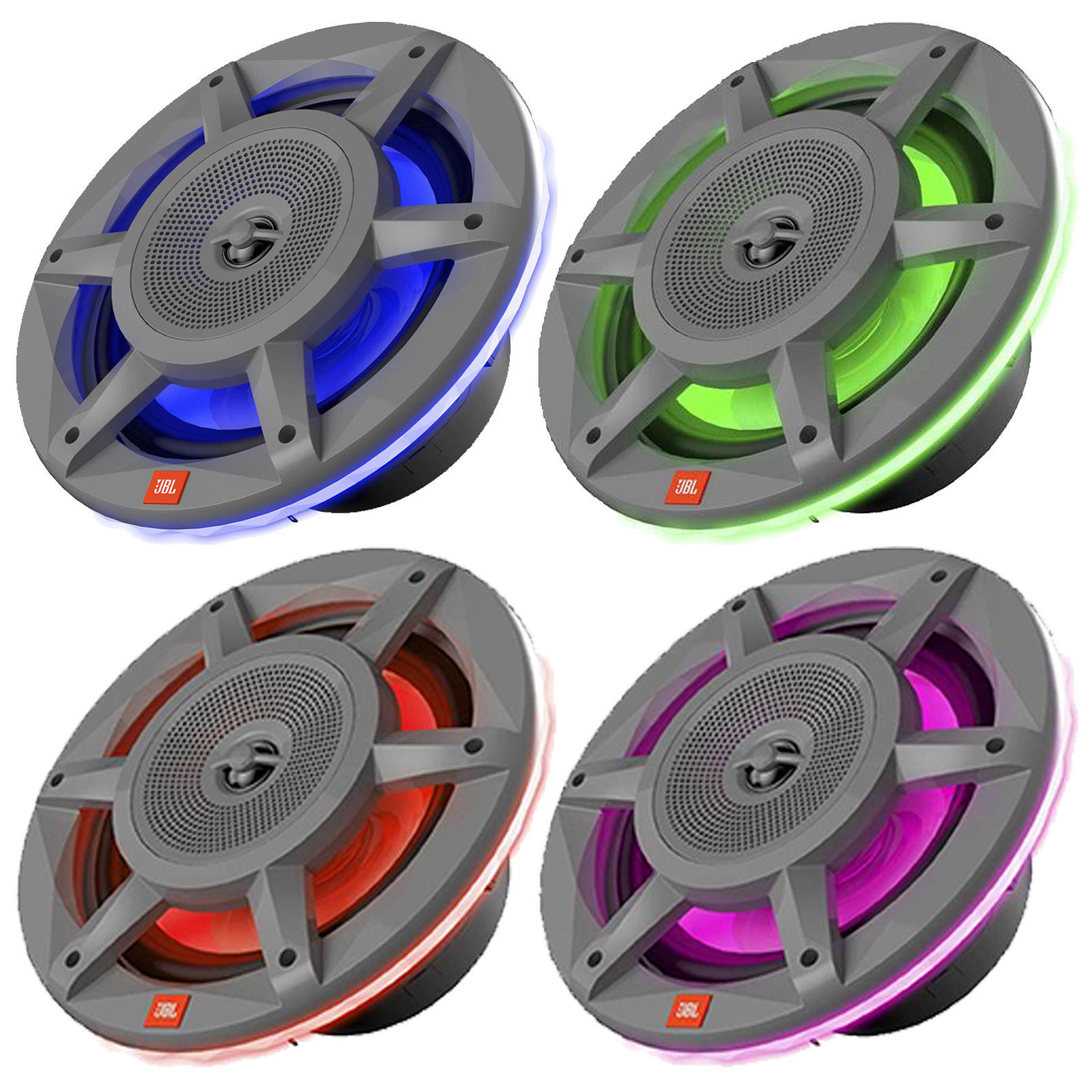PACKAGE BUNDLE INCLUDES: 4x JBL JBLMARSPKSD82MGAM 8" 500 Watts Max Power Premium Convertible 3-Way Gray Marine Audio RGB LED Speakers (Bulk Packaging)