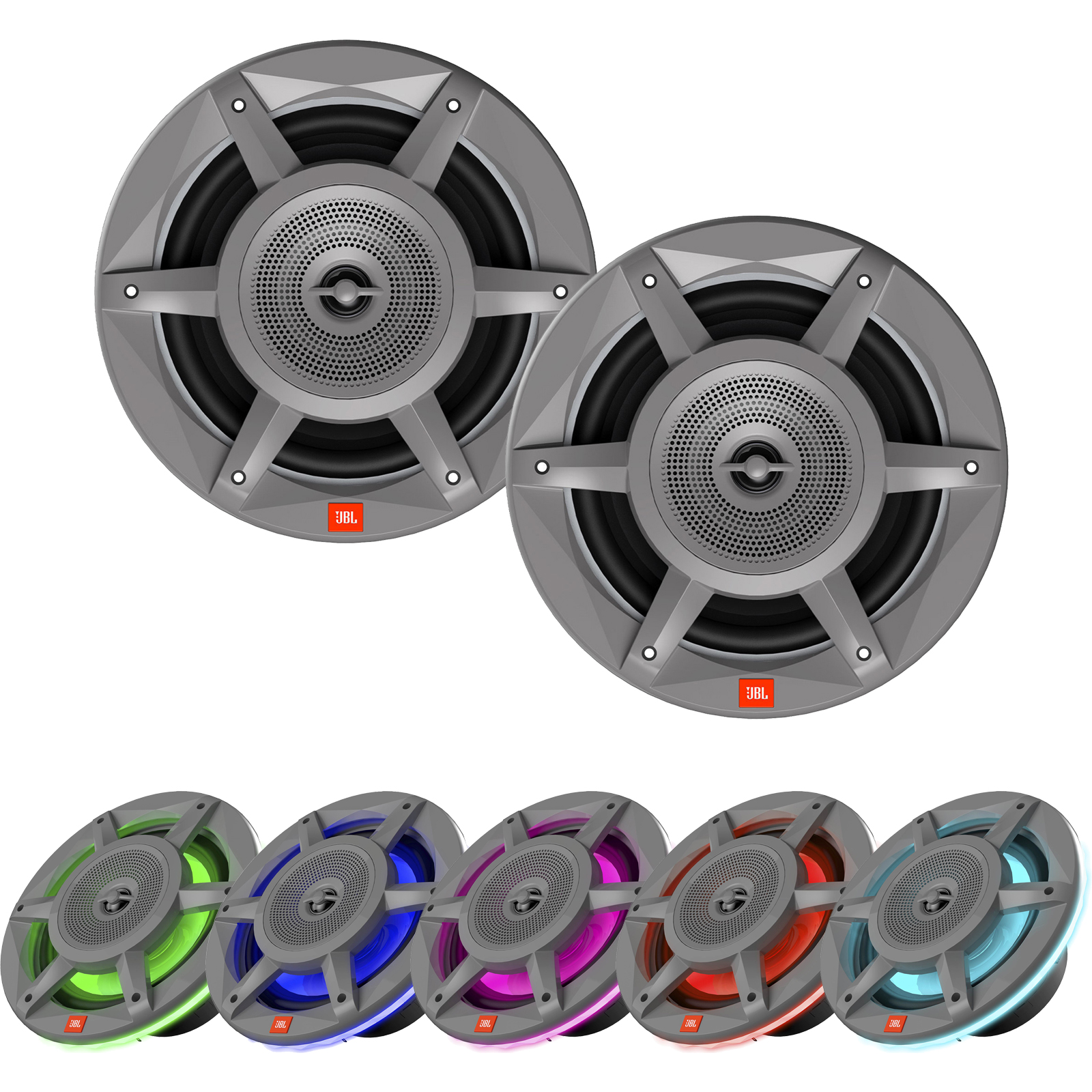 • SPEAKERS: JBL's Stadium Marine loudspeakers leverage JBL’s world class audio engineering and music reproduction with purpose-built marine loudspeakers that will survive the rigors of the harsh marine environment. Choose from the most popular sizes for boats and watercraft. Wind, water or engine noise will not drown them out. Speakers are UV resistant in a marine grade IPX3 (IPX5 from front) weather resistant and include RGB perimeter illumination and go through 300 hours of salt spray testing.