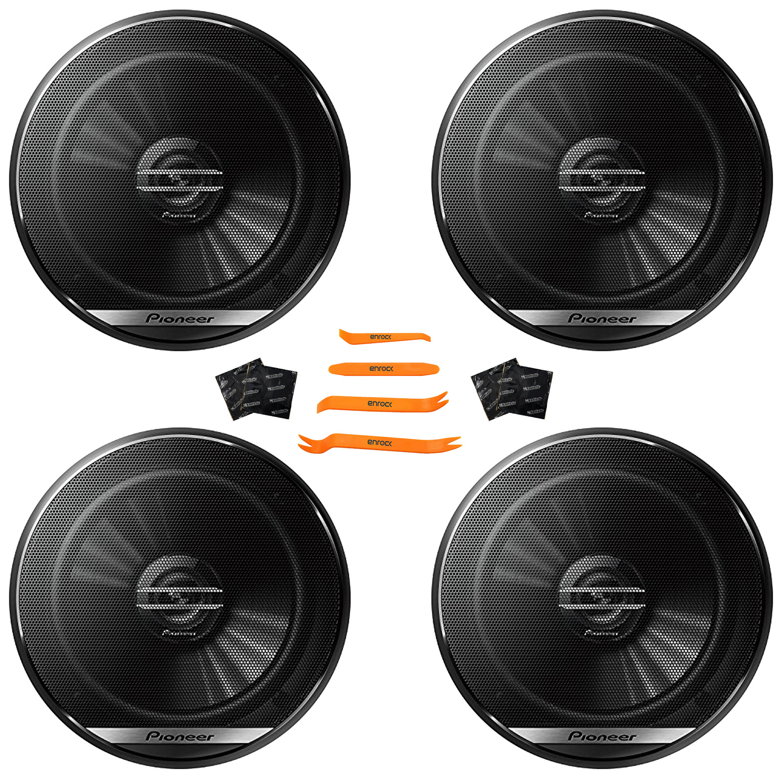 PACKAGE BUNDLE INCLUDES: 4x Pioneer TS-G1620F 6.5" 300 Watt Max Power 2-Way Coaxial Car Audio Speakers, 4x Speaker Sound Deadening Material For Car Speakers, 4-Piece Trim Removal Pry Tool Set
