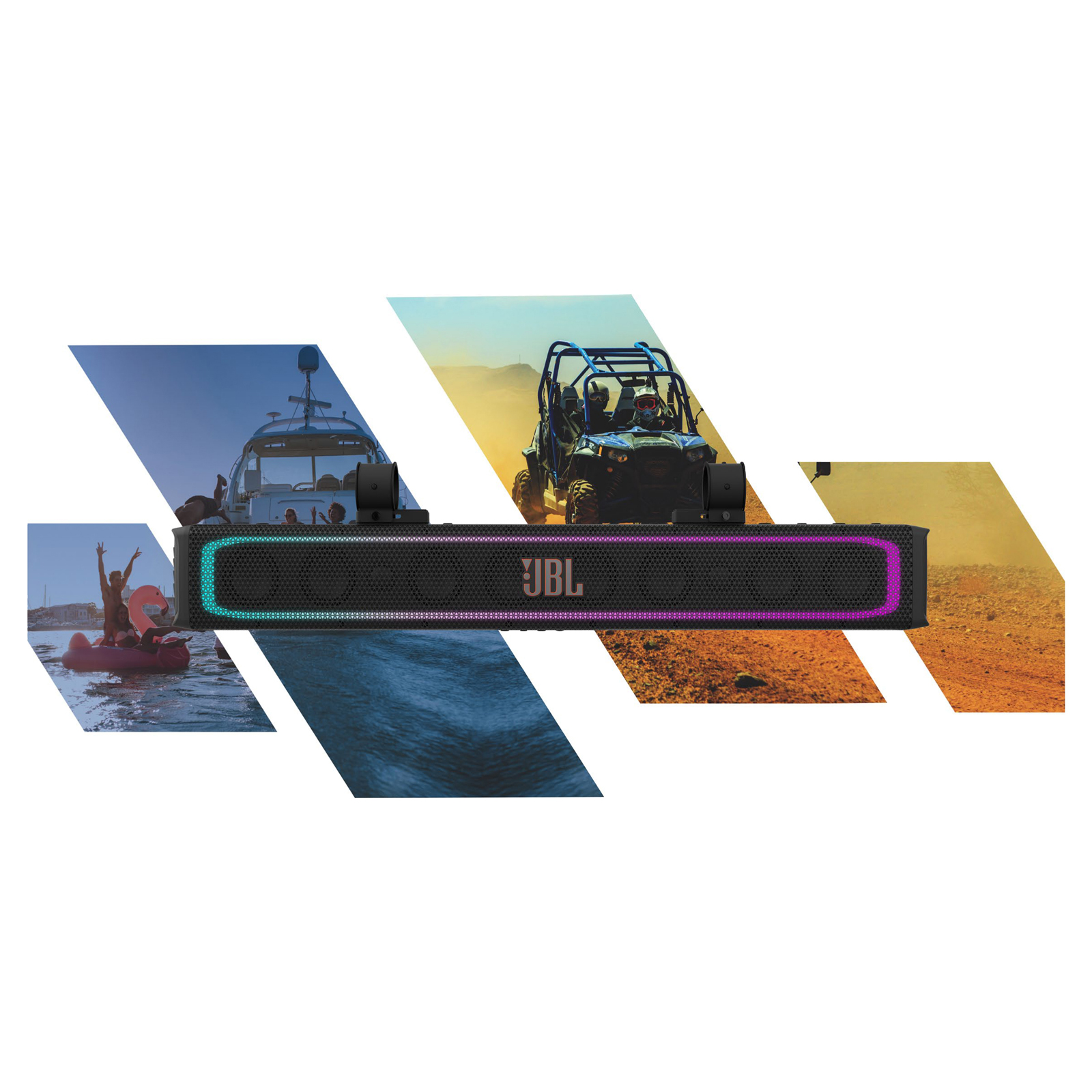 JBL RALLYBAR XL is a IP66 rated water resistant Bluetooth Soundbar with 300Wrms amplifier, extraordinary sound experience and unique dynamic LED lights to UTVs, golf carts, boats and other vehicles built for recreation. Each RALLYBAR XL can be used by itself or connected to multiple RALLYBAR XL or RALLYBAR XL family products (RALLYBAR, RALLYBAR S and RALLYBAR XL) by using its built-in broadcast mode. The innovative mounting kits design (patent pending) offers multiple position combinations on top and back to accommodate a variety of installation requirements. Bluetooth, USB disk and Aux-in audio players are supported. HI-Resolution Audio for AUX-IN input audio source is available.