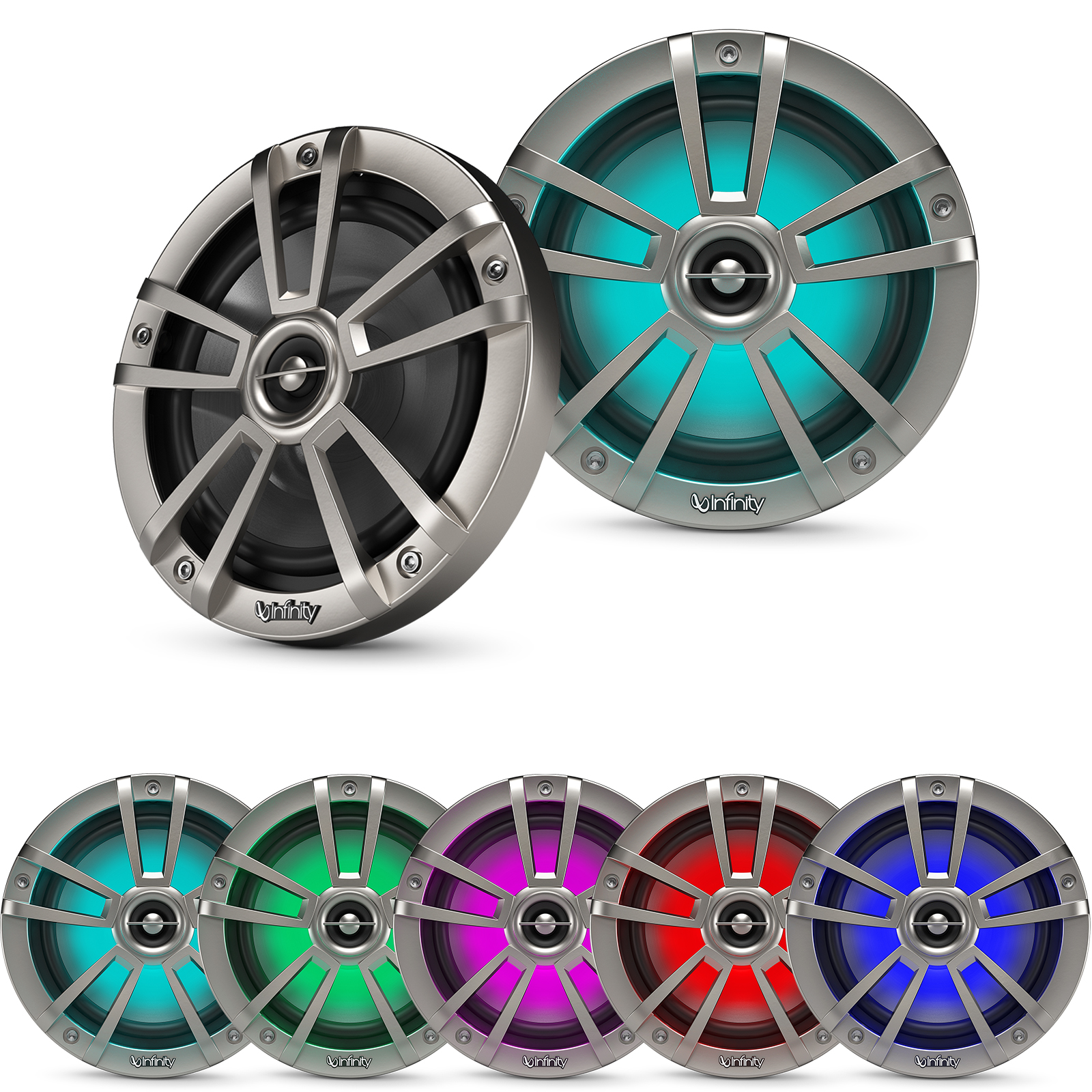 Infinity Reference Marine Speakers are ready to take on your next outdoor adventure. These fully marinized speakers not only deliver Infinity sound, but they also feature RGB lighting to bring the sound to life. Engineered to withstand sun, salt, sea spray and wash downs, they feature sealed motor structure, UV resistant one-piece cast-polymer baskets, a sealed magnet and rubber surrounds. The polypropylene cone and balanced dome tweeter provide great bass, smooth highs and lots of output to ensure every note can be heard loud and clear.