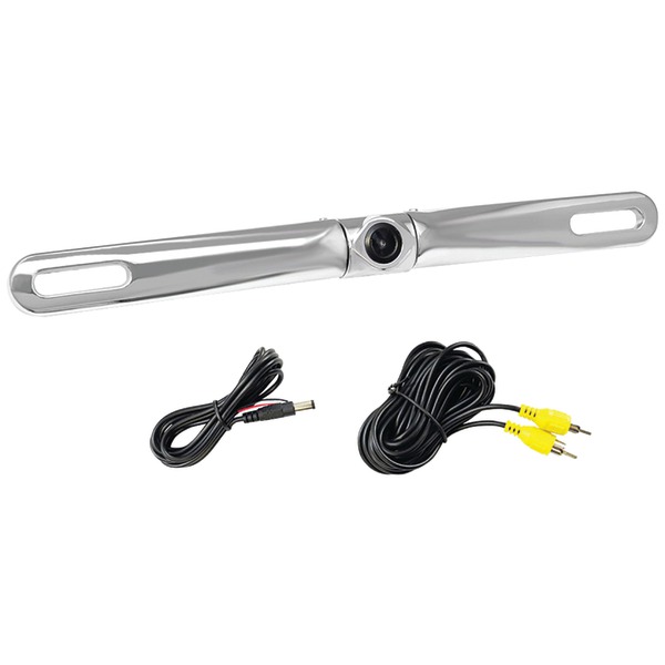 The PLCM18SC is a rear-view backup camera that easily mounts to your vehicle's license plate. Paired with an in-vehicle monitor, it's a great way to increase the safety and security of your vehicle. This powerful camera is equipped with true color reproduction, a resolution of 420 TV lines. It works in a variety of weather conditions and at night, thanks to IP67-compliant weatherproofing, built-in fog resistance, and excellent low lux performance. This camera even has the ability to project distance scale lines onto the monitored image — so you can tell how far away nearby objects are. And it's finished in a unique zinc metal chrome, a light reflective color that fits well with many cars' exteriors. 17 foot male-to-male RCA cable included.