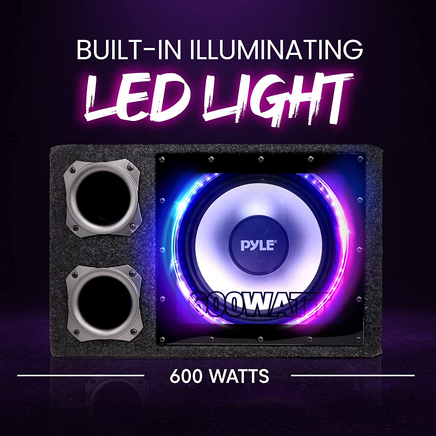 Pyle PLBNPS12 12" 600 Watt Rear Vented LED Subwoofer Enclosure w/Remote
