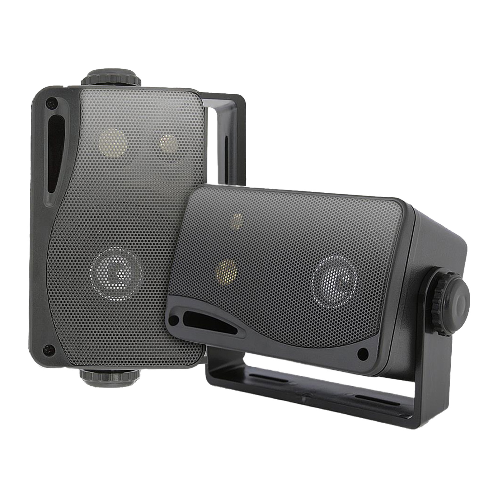 • SPEAKERS: The Pyle PLMR24B 3.5" marine 3-way speakers are completely waterproof with a removeable rustproof grill featuring built in capacitor crossover network, 200 watts max power handling, Bass reflex vent for added bass response. These 3-way speakers provide the full spectrum of sound, thanks a 3.5" aluminum injection cone woofer with a 24 oz. magnet for the low end, a 1.75" wide dispersion cone for the midrange, and a 1" super dome tweeter for the highs.