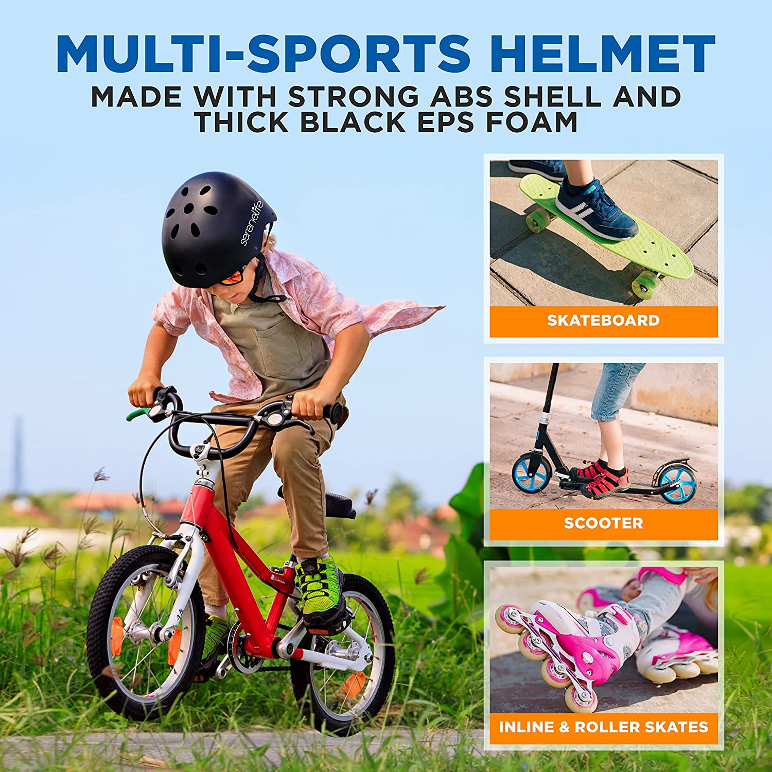 Sports Safety Helmet –Multi-Sport for Kids and Youth (Black)