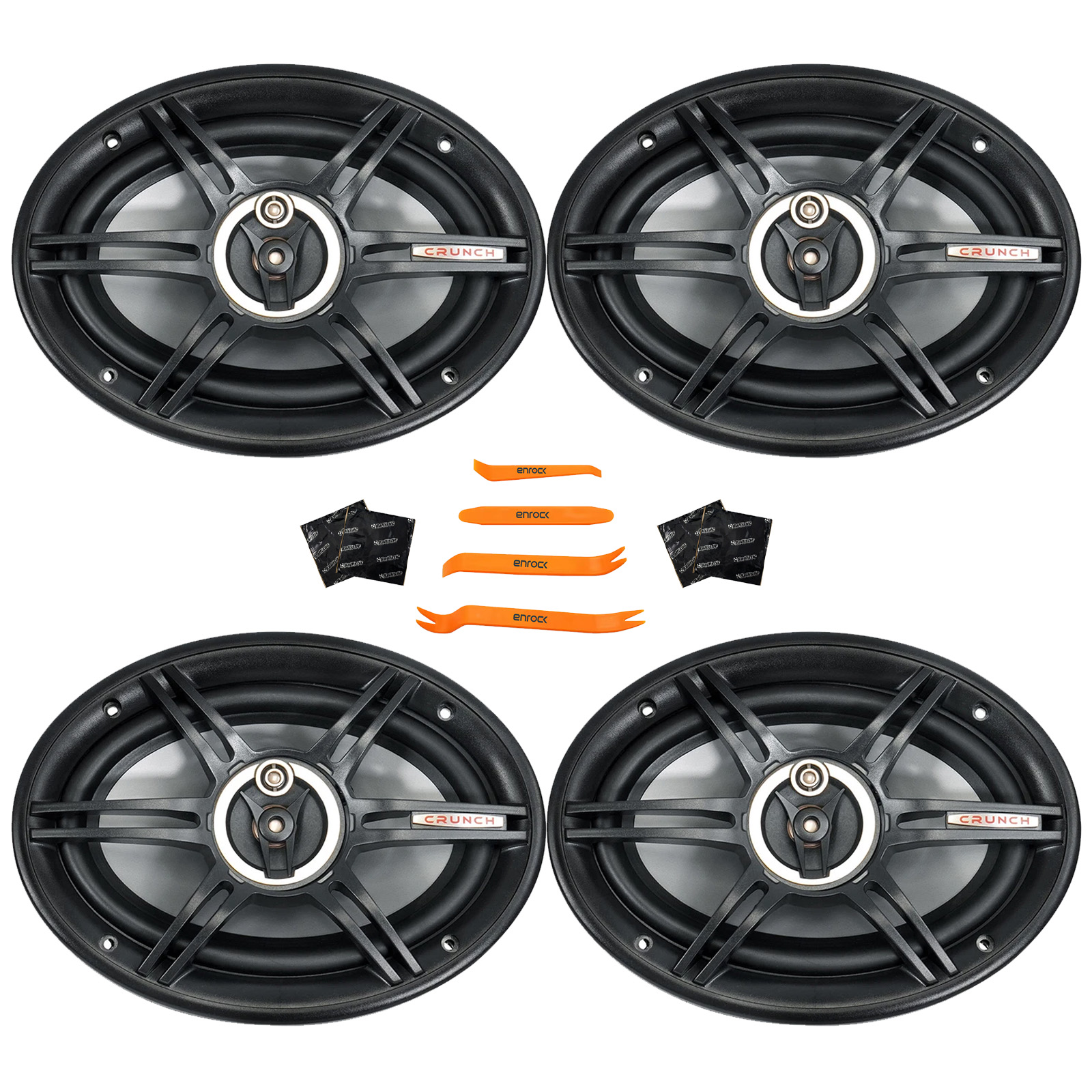• PACKAGE BUNDLE INCLUDES: 4x Crunch CS693 6x9" 400 Watt Max Power Full Range 3-Way 4-Ohm Car Audio Speakers, 4x Speaker Sound Deadening Material For Car Speakers, 4-Piece Trim Removal Pry Tool Set