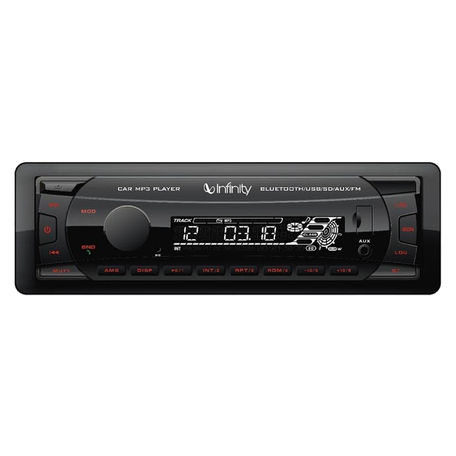 • RECEIVER: The Infinity Alpha 100 is an easily mounted single DIN car receiver featuring a detachable face, FM radio, a USB and SD card reader to access your music files, built in Bluetooth for hands free calling mode and streaming music from a connected device. The multimedia system provides 50W x 4 of power to give you the sound you crave and includes an AUX input.