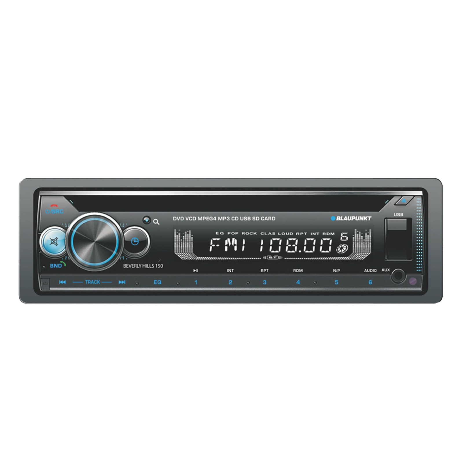 • RECEIVER: The Blaupunkt Single DIN Beverly Hills 150 receiver featuring a detachable faceplate, Bluetooth streaming, no cables needed, MP3/USB/Aux, a USB drive, AM/FM radio, Clear LCD display and Hands-free calling take calls and stay connected without ever taking your eyes off the road.