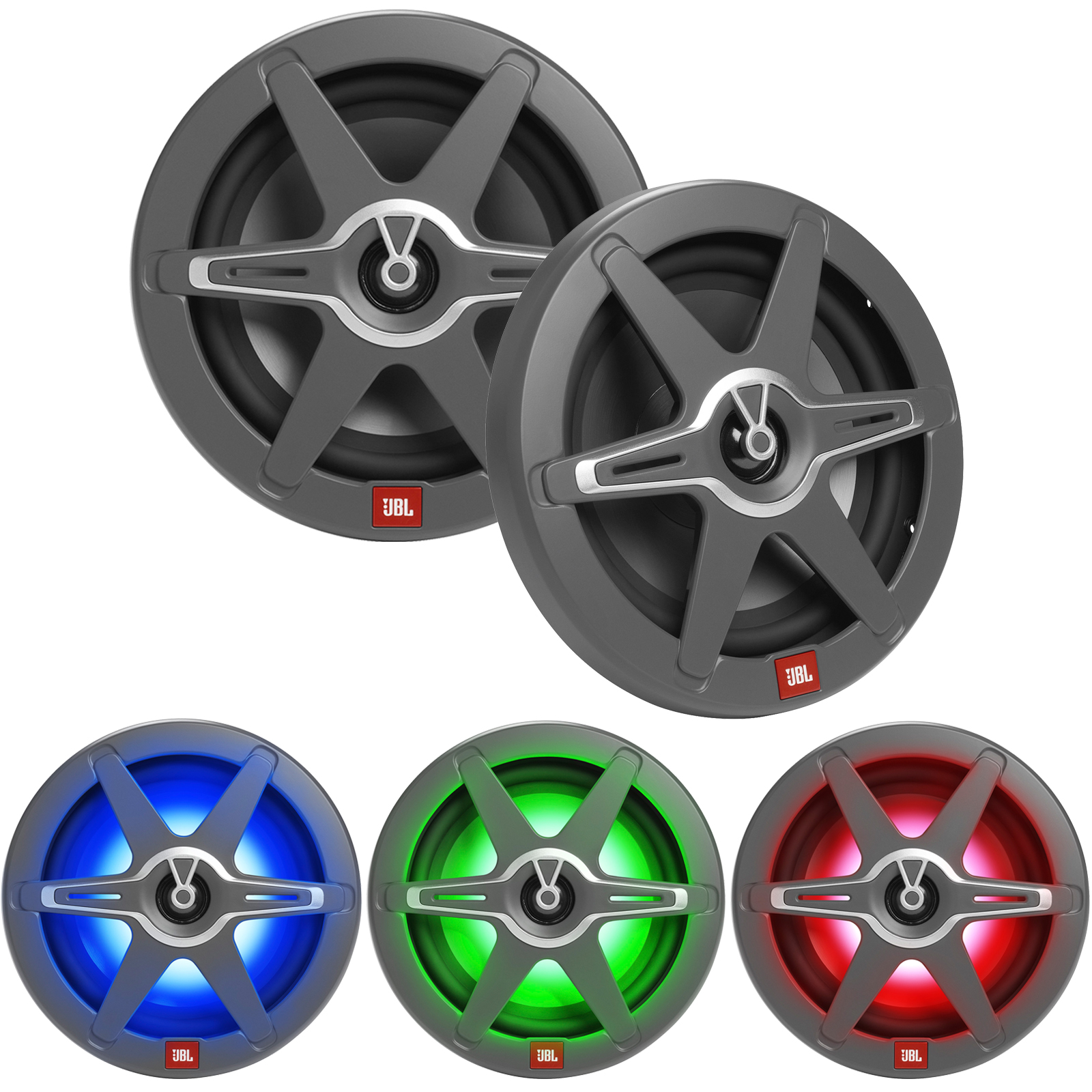 • SPEAKERS: JBL Club Marine OEM Replacement Speakers are ready for your next outdoor adventure. These fully marinized speakers not only deliver JBL sound, they also provide RGB lighting to bring the sound to life. Engineered to withstand sun, salt, sea spray and wash downs, they feature sealed motor structures, UV resistant one-piece cast-polymer baskets, a sealed magnet and rubber surrounds.