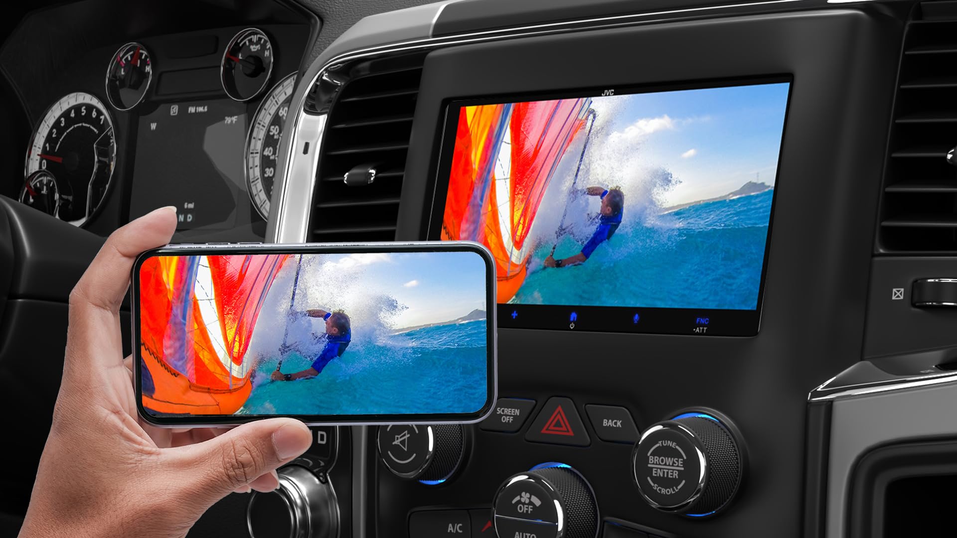 - Wireless Apple CarPlay & Android Auto – Control maps, music, calls, and messages from your smartphone on the 6.8-inch touchscreen without plugging in