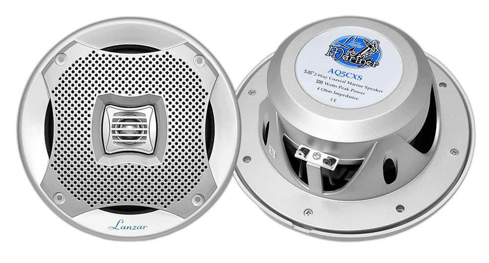 • SPEAKERS: The Lanzar AQ5CXS 5.25” Marine 2-Way Speakers deliver powerful, crystal-clear sound with a peak power of 400 watts. Designed for both indoor and outdoor use, these water-resistant speakers feature a durable resin-treated design and attachable grills for added protection. Ideal for boats, poolside's, or patios, they offer reliable audio performance in any weather. Finished in sleek silver, this 1-pair set combines style, strength, and sound quality for marine and outdoor audio systems.