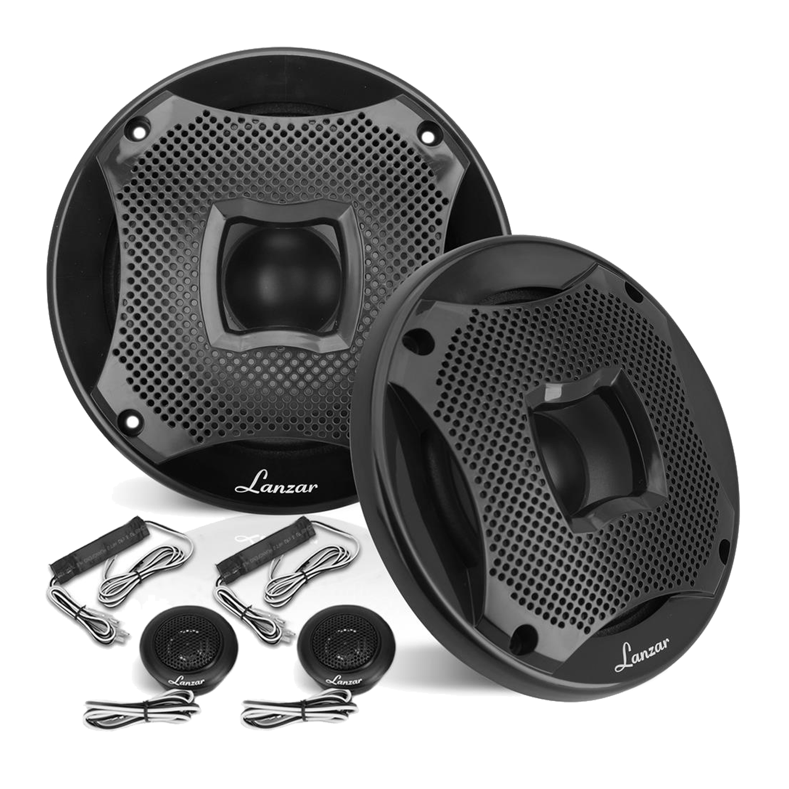 PACKAGE BUNDLE INCLUDES: Metra IBBTR19 Marine Bluetooth 3-Zone Controller, 4x Lanzar AQ65.2CMB 6.5" 450 Watt Max Power 2-Way Boat Audio Component Kit Black Speakers, Pyle PLMRMB4CW 4-Channel Waterproof Bluetooth Amplifier, 8 Gauge Amplifier Installation Kit