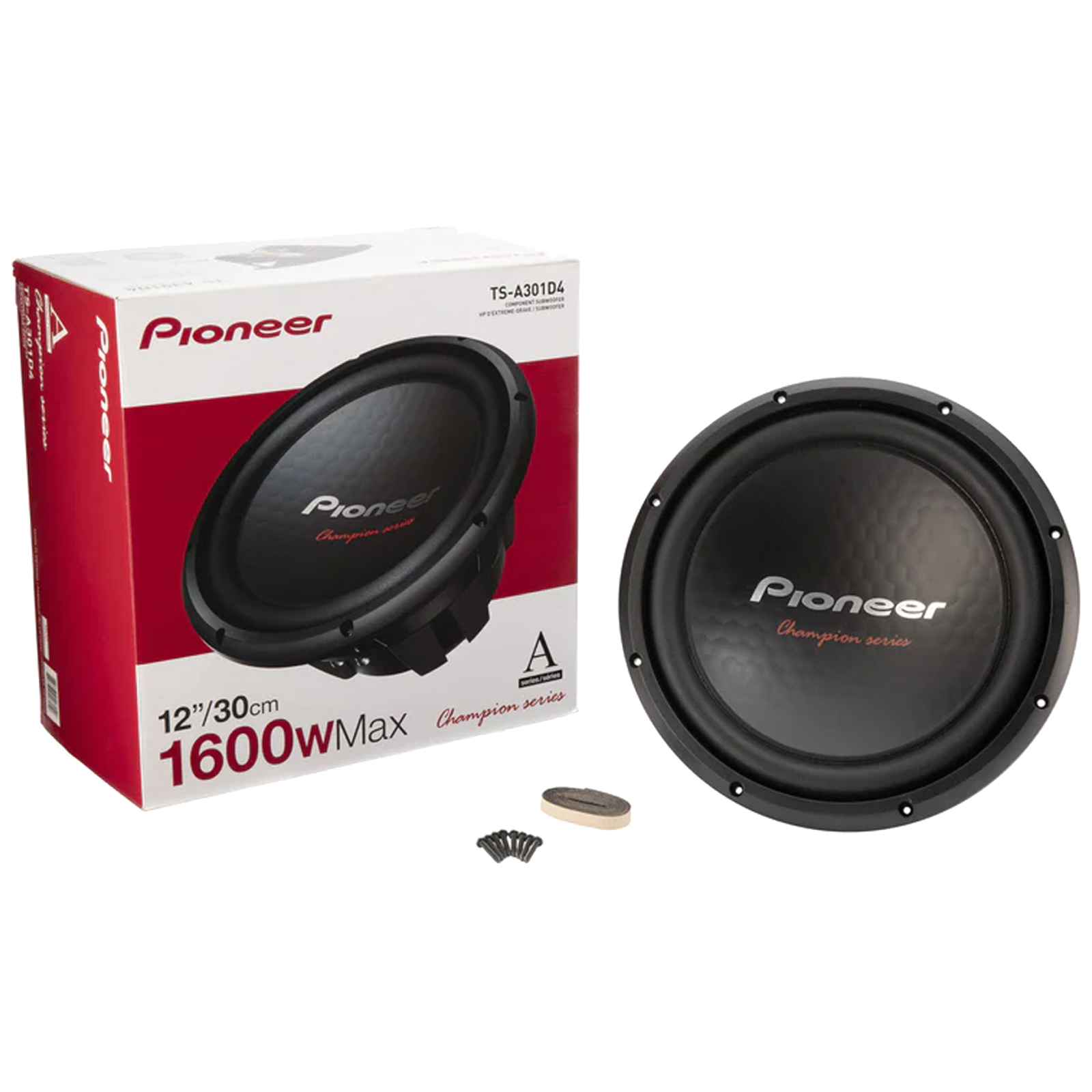 Pioneer TS-A301D4 12" 1600 Watt Max Power Dual 4 Ohm Voice Coil Subwoofer with 2-piece Honeycomb IMPP Cone Structure, Champion Series (Single)